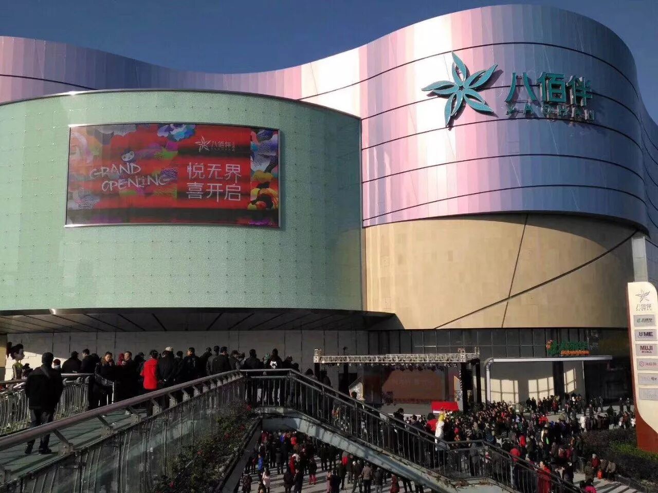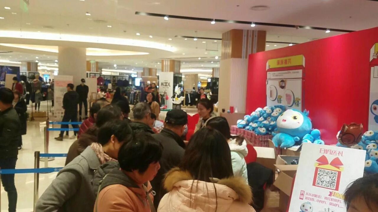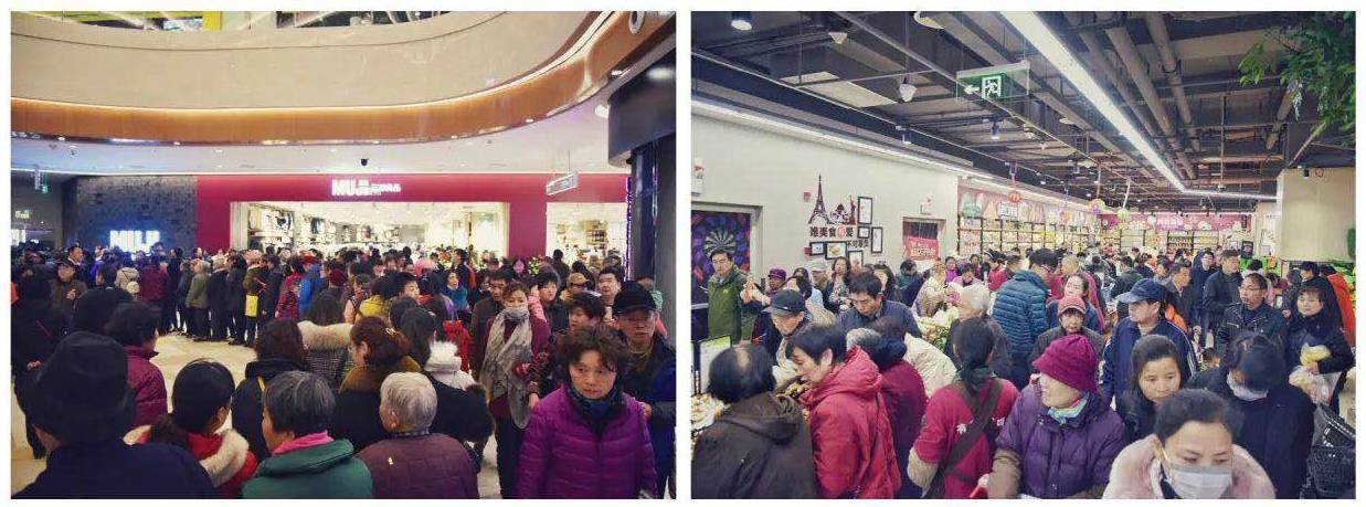 早上9点,门口已经挤满了等待开业的人群,甚至把天桥都站满了。
