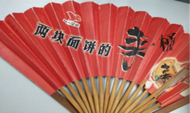 这把扇子是金坛大统华开业时期财务部范淑飞留给后来同事的一份“宝物”,开业时期由于办公室条件有限没有空调,而且办公电脑较多所以温度高,大家只能用扇子来降温,至今,金坛大统华一直保留着这把扇子,在平时办公室较热时拿出来纳凉。
